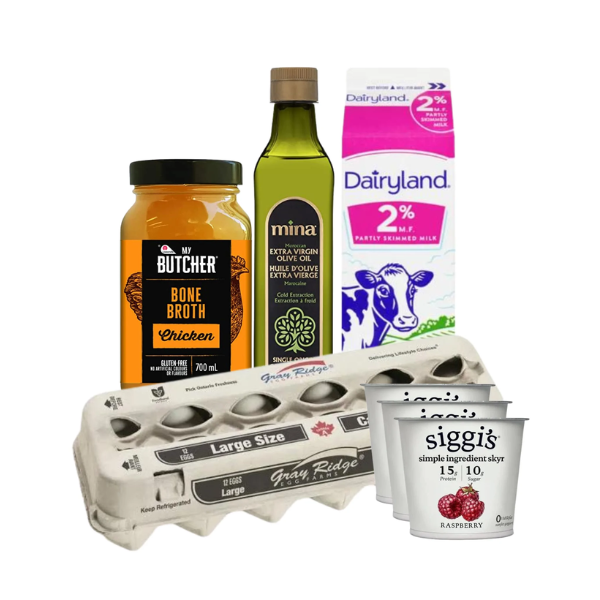 Our clients with high protein needs are provided with high-cost but essential items like milk, eggs, bone broth, high-protein yogurt, protein bars, and more.